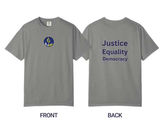 We Are The Light Rally Comfort T-shirt — Protect our Democracy (Justice)